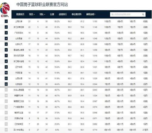 CBA最新排名!北京爆冷輸球廣東大勝,遼寧高歌猛進上海勢不可擋