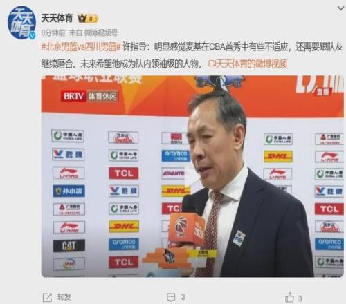 北京隊主帥許利民對此表示:麥基首秀有些不適應(yīng)CBA節(jié)奏,仍需要跟隊友磨合培養(yǎng)默契,未來希望他能夠成為球隊的領(lǐng)袖級別人物。