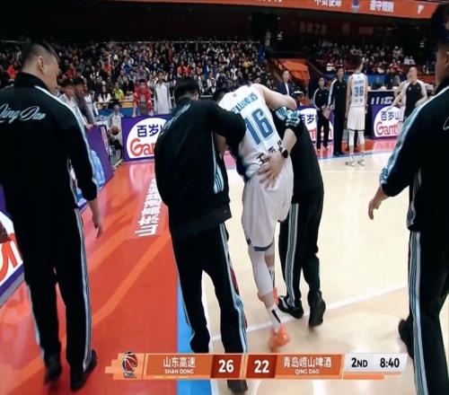 次節(jié)再戰(zhàn),青島男籃利用罰球迫近比分,王奕博上籃不慎扭傷。陶漢林、克里斯的內(nèi)線優(yōu)勢明顯,威瑟斯龐利用個人能力僵持局面。克里斯、珀塞爾連續(xù)暴扣,分差拉開到兩位數(shù)。約瑟夫楊連中兩記高難度三分,半場比賽結(jié)束,青島男籃將分差縮小到8分。