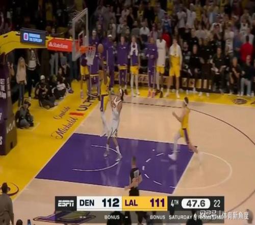 隨后,盡管掘金隊爭得球權,但斯瑪特迅速完成對戈登的搶斷,并發(fā)起反擊上籃,助湖人隊反超1分。
