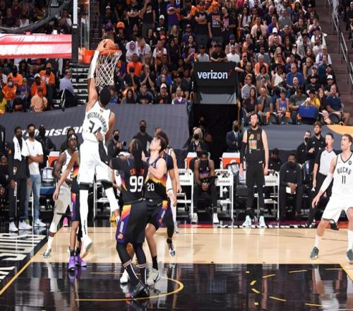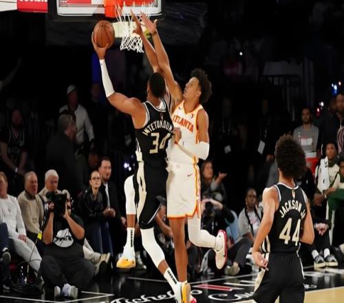 字母哥外線持球,沖擊步行者內(nèi)線,兩人對抗之后,字母哥轉(zhuǎn)身加速擠進(jìn)禁區(qū),隨后就是一記隔扣。