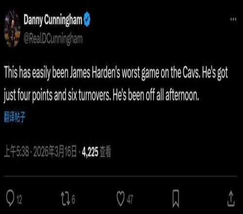 在這一場大爆冷比賽中,哈登打出加盟騎士以來最差一戰(zhàn),進(jìn)攻端手感全無失誤不斷,防守端投入度不足頻頻成為被針對(duì)的短板。