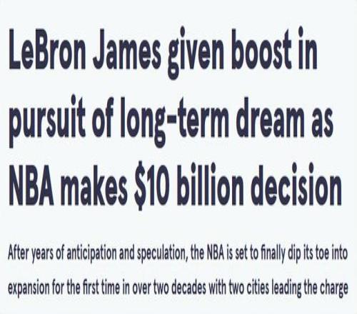 擴(kuò)軍讓老詹夢想成真四年前發(fā)聲:希望在拉斯維加斯擁有一支球隊(duì)