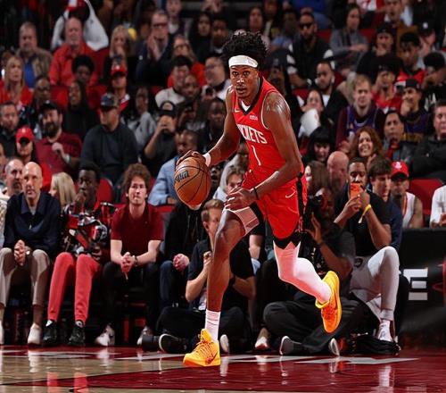 本場(chǎng)比賽中,火箭的先發(fā)控衛(wèi)阿門-湯普森(Amen Thompson)的個(gè)人表現(xiàn)還是不錯(cuò)的,但是他在場(chǎng)上也并沒有起到應(yīng)該起到的作用,完全沒有扮演好自己的角色。阿門全場(chǎng)出場(chǎng)40分32秒,投籃13中8,三分線外1中0,罰球4中3,得到了19分12籃板5助攻1蓋帽的數(shù)據(jù),其中還包括了5個(gè)前場(chǎng)籃板,還有4次失誤和3次犯規(guī),正負(fù)值為-6。阿門的進(jìn)攻效率還是不錯(cuò)的,他還是能夠在對(duì)手內(nèi)線制造一些威脅的,他的籃下終結(jié)能力相當(dāng)不錯(cuò),他在前場(chǎng)籃板爭(zhēng)搶方面的表現(xiàn)也是非常出色的。不過阿門在外線投籃方面的短板,在傳球和組織能力方面的不足,在失誤控制方面所出現(xiàn)的問題,也都是肉眼可見的。阿門在后場(chǎng)籃板保護(hù)方面也做得不錯(cuò),在防守端也算是盡力了,但是他在場(chǎng)上的表現(xiàn)還是差了一些的。作為先發(fā)控衛(wèi),阿門在組織和串聯(lián)方面的表現(xiàn)實(shí)在是不太理想,甚至可以說他根本沒有去做什么跟控衛(wèi)相關(guān)的事情。