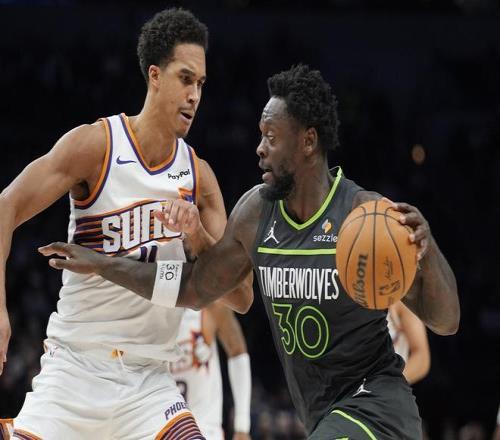 森林狼力克太陽,愛德華茲因傷缺陣,蘭德爾帶隊。上半場他9投5中(三分2中1),罰球4中2,拿到13分4籃板1助攻1搶斷。