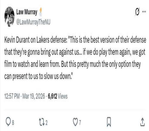 賽后面對球隊(duì)遭湖人雙殺,杜蘭特更是嘴硬放出暴論:“這是他們能夠拿出的最佳防守陣容,如果我們再次交手,我們可以針對錄像學(xué)習(xí)改進(jìn),這也幾乎是他們?yōu)榱讼拗莆覀兌苣贸鰜淼奈ㄒ坏倪x擇。”