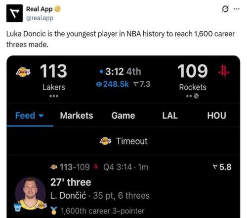 憑借這樣的表現(xiàn),27歲19天的東契奇迎來(lái)1600記三分里程碑,創(chuàng)造NBA歷史最年輕紀(jì)錄。