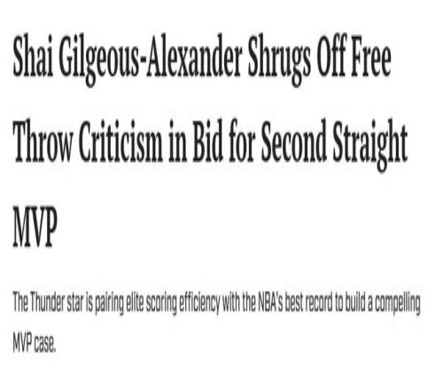 北京時(shí)間3月21日,亞歷山大在最近一次采訪中明確表態(tài)自己想拿MVP,還回應(yīng)了球迷關(guān)于自己罰球的爭(zhēng)議?!拔耶?dāng)然想...