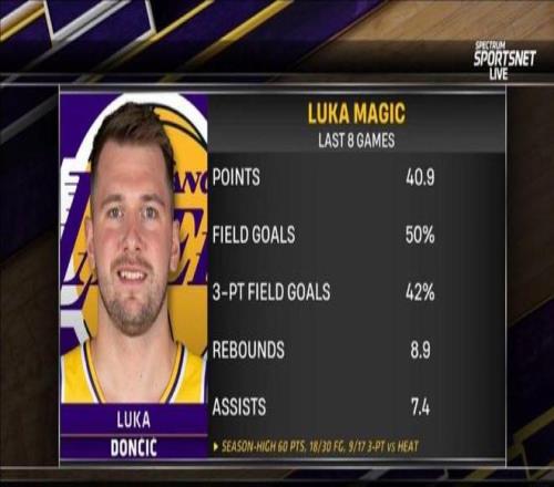 這8場比賽,東契奇全部出戰(zhàn),最低出手次數(shù)是24次,最低得分是31分,毫無疑問已經(jīng)是湖人的絕對核心,這期間他場均能夠拿下40.9分8.9籃板7.4助攻,再次證明只要讓東契奇當核心,他是可以率隊贏球的。
