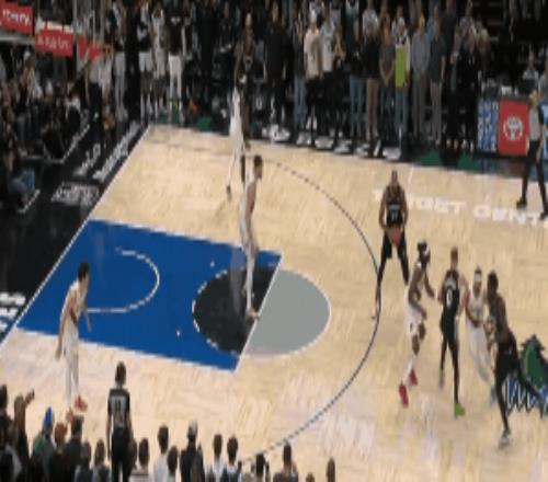 迪文琴佐持球突破面對克林根防守強行得分失敗,之后克林根和戈貝爾兩人巔峰搶板對決。戈貝爾在位置更好下想補籃但被克林根干擾,最終球被開拓者的格蘭特拿下來...