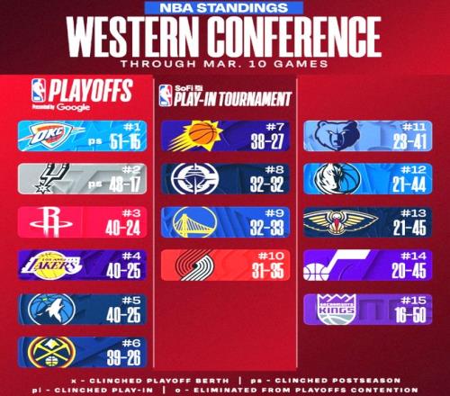 西部徹底亂套:第3到第6,位置都不穩(wěn)!首個(gè)無緣季后賽球隊(duì)誕生了