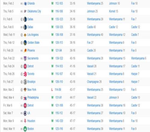 馬刺17戰(zhàn)16勝劍指聯(lián)盟第一!奪冠賠率已升第三文班亞馬逆襲MVP