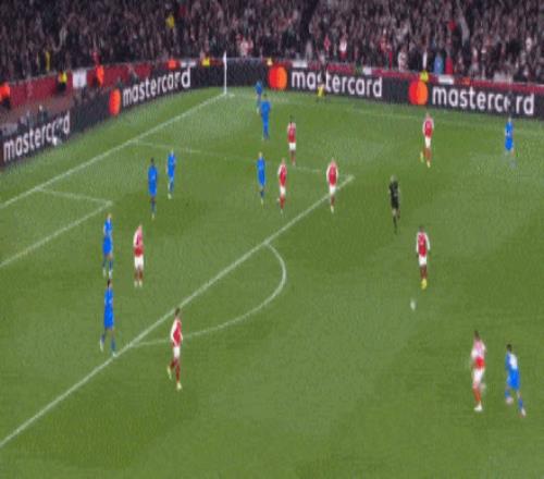 第36分鐘,阿森納中路連續(xù)頭球爭頂,特羅薩德向前做球,弧頂附近埃澤接球轉(zhuǎn)身直接爆射轟出超級世界波,阿森納1-0勒沃庫森。