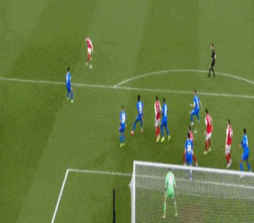 第60分鐘,賴斯禁區(qū)前沿勁射轟出貼地斬,皮球直鉆死角,阿森納2-0領(lǐng)先。