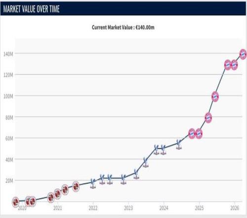 2025年10月,奧利塞的身價(jià)再次暴漲,身價(jià)來到1.3億歐,而本期更新后他的身價(jià)來到1.4億歐,領(lǐng)跑德甲身價(jià)榜。