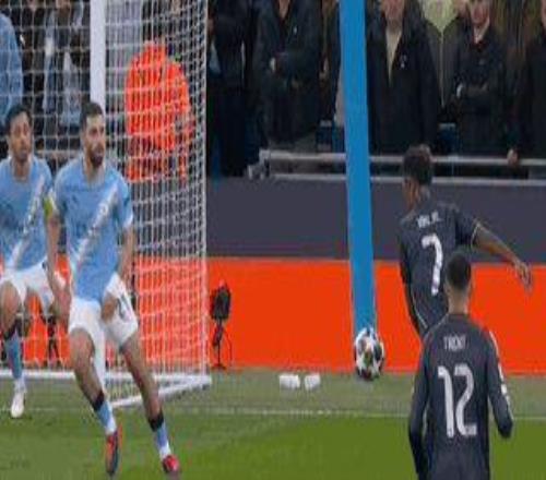 第17分鐘,巴爾韋德直塞,維尼修斯左路內切后射門中柱彈出,皇馬二次進攻,維尼修斯禁區(qū)右側再次射門,B席在門線上用手臂將球擋出,VAR復核后確認B席手球,主裁判蒂爾潘判罰點球,并將曼城隊長紅牌罰下。