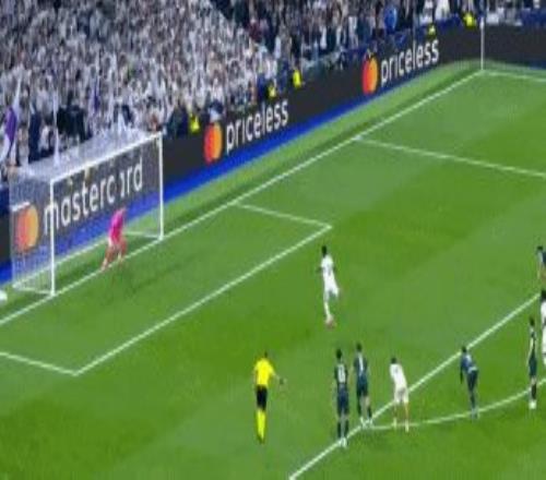 第75分鐘,皮塔奇后場(chǎng)護(hù)球失誤,奧賴?yán)嚯x捅射,庫(kù)爾圖瓦逆天反應(yīng),伸腿將球擋出,皇馬逃過(guò)一劫。