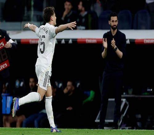 好在贏球的方案仍在皇馬手中。巴爾韋德的直接任意球射門被門將擋出,后衛(wèi)慌亂中頭球解圍,被等待搶點的呂迪格抓個正著,迎球一腳打破僵局。這個有些偶然的進球瞬間改變局面。幾分鐘后,巴爾韋德持球推進發(fā)動進攻,弗蘭·加西亞巧妙將球短傳到禁區(qū)前,巴爾韋德假動作晃開空當,起腳直掛死角。烏拉圭人被阿隆索當成補丁球員,一場打右后衛(wèi)另一場打后腰,整個上半賽季都沒開張。但在阿韋洛亞手下,他回到主角團隊,近1個月已經(jīng)打進6球。