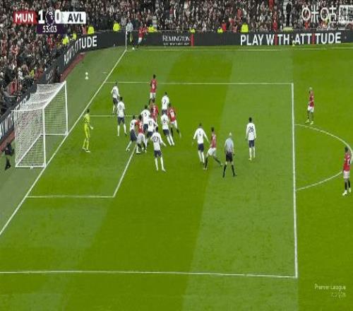 聯(lián)賽第7球!比賽第53分鐘,B費角球助攻卡塞米羅頭槌打破僵局,曼聯(lián)1比0維拉!