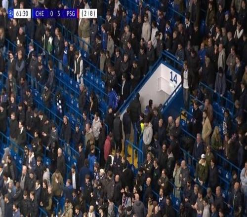 或許是比分太過于難看,中場休息時,部分切爾西球迷已經(jīng)忍無可忍,紛紛頭也不回提前離場?;蛟S他們也不忍心看到自己心愛的球隊,淪落到被對手“暴揍”的一幕。而作為對手的大巴黎球迷,則開始揮手歡送藍軍球迷離場。
