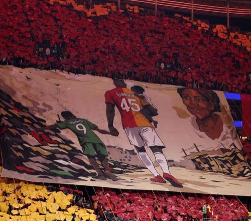 在首回合比賽中,加拉塔薩雷球迷在利物浦控球時不斷發(fā)出噓聲,營造出極具敵意的氛圍,這也是他們一貫以來的主場特點。賽前,現(xiàn)場還展示了以奧斯梅恩為主題的巨型看臺拼圖。