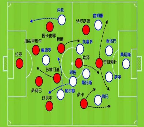 阿森納中鋒哲凱賴什作為橋頭堡類型的攻擊手,他自己得分效率不高,不過活動(dòng)范圍大。通過哲凱賴什突前或者拉邊,帶來后排前插,也是阿森納的一個(gè)殺招。