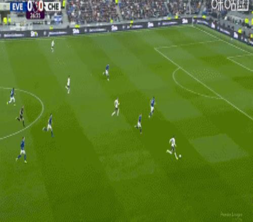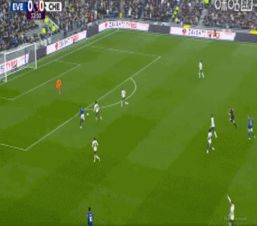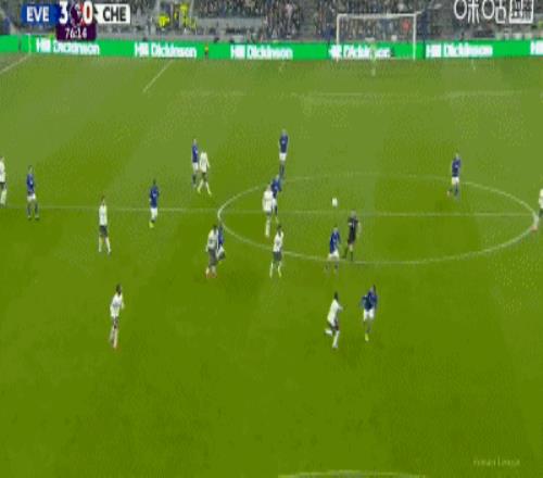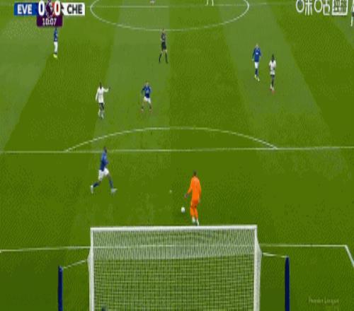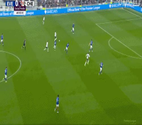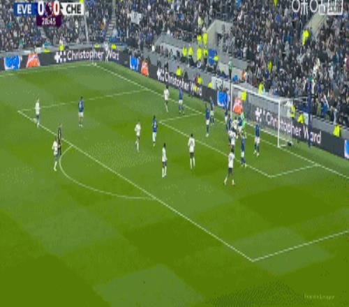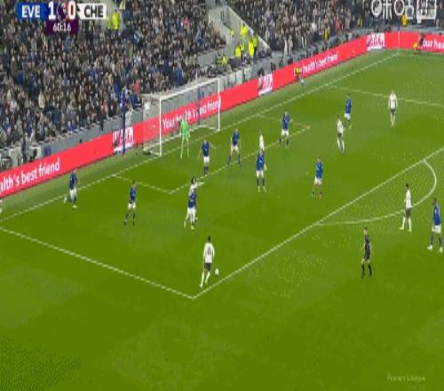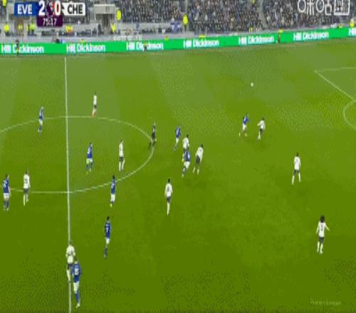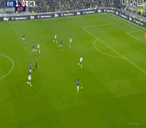 第34分鐘,加納直塞,貝托冷靜挑射破門,埃弗頓1-0切爾西