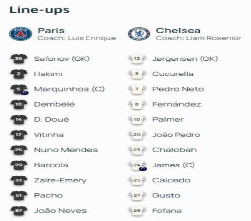 巴黎vs切爾西:登貝萊、帕爾默領(lǐng)銜,杜埃、佩德羅出戰(zhàn)