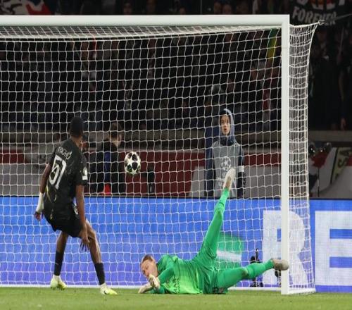 他傳出了許多好球,也有一些幸運(yùn)地找到了目標(biāo)。他還做出了幾次令人印象深刻的撲救——最突出的是上半場將登貝萊的閃電射門托到近門柱上——并且對巴黎圣日耳曼四個(gè)進(jìn)球中的三個(gè)都無能為力。