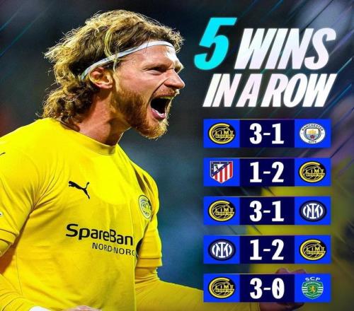在剩余的一場(chǎng)歐冠比賽中,本賽季的大黑馬挪超霸主博德閃耀主場(chǎng)3比0拿下葡萄牙體育,豪取歐冠5連勝。