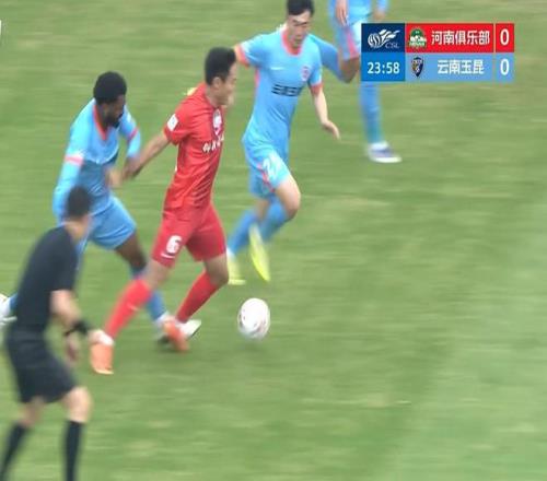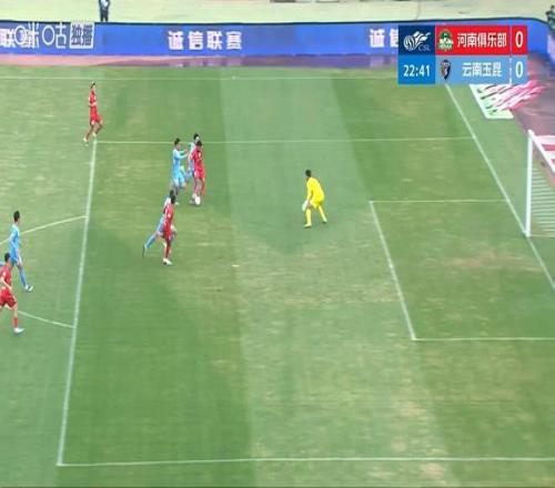 第29分鐘,姆布拉第3個單刀!云南后場傳球失誤被古斯塔沃斷下,古斯塔沃順勢傳給左路插上的姆布拉,姆布拉單刀守門員小門得手,河南1-0。