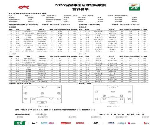 北京時(shí)間3月15日15:30,中超第2輪,河南主場對(duì)陣云南玉昆。賽前首發(fā)公布。